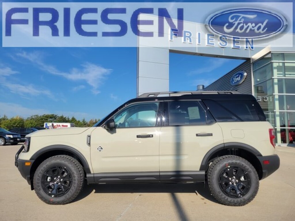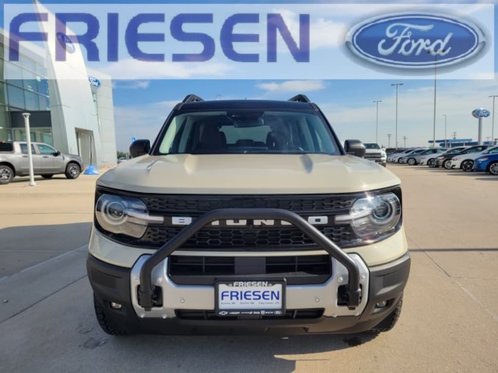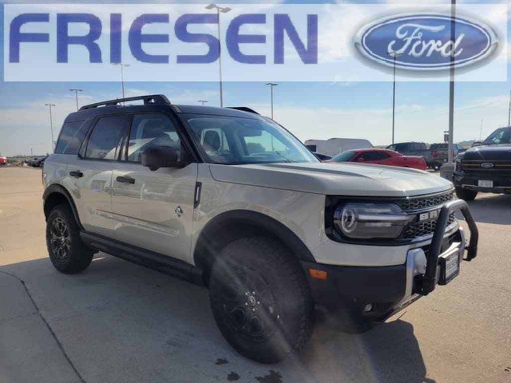 Desert Sand 2025 Ford Bronco Sport Outer Banks 4WD 8-Speed Automatic 1.5L EcoBoost Navigation System, Leather Seats, Bluetooth, Backup Camera, 4X4, Heated Seats, Auto Climate Control, Smart Phone Integration, 110V/400W AC Power Outlet, 2nd Row Carpeted Seatback, 360-Degree Camera w/Trail & Split View, 4-Wheel Disc Brakes, 6 Speakers, ABS brakes, Air Conditioning, Alloy wheels, AM/FM radio: SiriusXM, AM/FM Stereo, Auto High-beam Headlights, Auto-dimming Rear-View mirror, Automatic temperature control, Auxiliary Switches & Wiring, B&O Sound System by Bang & Olufsen, Brake assist, Brush Guard, Class II Trailer Tow Pack w/Trailer Sway Control, Compass, Connected Navigation, Delay-off headlights, Driver door bin, Driver vanity mirror, Dual front impact airbags, Dual front side impact airbags, Electronic Stability Control, Emergency communication system: SYNC 4 911 Assist, Equipment Group 300A, Fender Tie Downs, Four wheel independent suspension, Front & Rear Black Bumpers, Front anti-roll bar, Front Bucket Seats, Front Center Armrest, Front Driver/Passenger Seat Back Map Pockets, Front dual zone A/C, Front fog lights, Front License Plate Bracket, Front Parking Sensors, Front reading lights, Fully automatic headlights, Garage door transmitter, HD Radio, Heated door mirrors, Heated front seats, Heated steering wheel, High Clearance Fender Flares, HOSS 2.0 Off-Road Suspension, Illuminated entry, Interior Grab Handle, Knee airbag, Low tire pressure warning, Memory seat, Occupant sensing airbag, Outer Banks Tech Package+, Outside temperature display, Overhead airbag, Overhead console, Panic alarm, Passenger door bin, Passenger vanity mirror, Power door mirrors, Power driver seat, Power passenger seat, Power steering, Power windows, Premium Trimmed Front Bucket Seats w/Ebony/Roast, Radio data system, Rain sensing wipers, Rear anti-roll bar, Rear Parking Sensors, Rear reading lights, Rear seat center armrest, Rear window defroster, Rear window wiper, Recovery Hooks, Remote keyless entry, Reverse Brake Assist, Sasquatch Outer Banks Package, Security system, SiriusXM, Speed control, Speed-sensing steering, Speed-Sensitive Wipers, Split folding rear seat, Steering wheel mounted audio controls, SYNC 4 w/Enhanced Voice Recognition, Tachometer, Telescoping steering wheel, Tilt steering wheel, Traction control, Trail Control for Off-Road, Trip computer, Variably intermittent wipers, Wheels: 17" Ebony Black-Painted Aluminum, Wheels: 18" Ebony Black-Painted Aluminum.