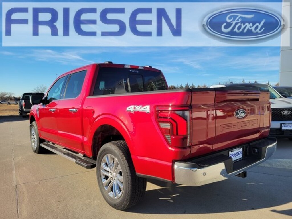 Rapid Red Metallic Tinted Clearcoat 2025 Ford F-150 Lariat 4WD 10-Speed Automatic 5.0L V8 Navigation System, Leather Seats, Bluetooth, Backup Camera, 4X4, Heated Seats, Auto Climate Control, Tow Hitch, Smart Phone Integration, 4WD, 2nd Row Heated Seats, 4 Pickup Box Tie-Down Plates, 4-Wheel Disc Brakes, 6" Extended Running Boards, 8 Speakers, ABS brakes, ActiveX Trimmed Bucket Seats, Adjustable pedals, Air Conditioning, Alloy wheels, AM/FM radio: SiriusXM with 360L, Ambient Lighting - Ice Blue Color Only, Auto High-beam Headlights, Auto-dimming door mirrors, Auto-dimming Rear-View mirror, Automatic temperature control, Bed Utility Package, Brake assist, Bumpers: chrome, Chrome wheels, Compass, Console Worksurface, Delay-off headlights, Driver door bin, Driver vanity mirror, Dual front impact airbags, Dual front side impact airbags, Electronic Stability Control, Emergency communication system: SYNC 4 911 Assist, Equipment Group 502A High, Front anti-roll bar, Front Bucket Seats, Front Center Armrest, Front dual zone A/C, Front fog lights, Front License Plate Bracket, Front reading lights, Front wheel independent suspension, Fully automatic headlights, Garage door transmitter, Heads-Up Display, Heated door mirrors, Heated front seats, Heated steering wheel, Illuminated Driver & Passenger Visors, Illuminated entry, Internet access capable: FordPass Connect 5G, LED Box Lighting, Low tire pressure warning, Memory seat, Mobile Office Package, Navigation system: Connected Navigation, Occupant sensing airbag, Outside temperature display, Overhead airbag, Overhead console, Panic alarm, Partitioned Lockable Rear Storage, Passenger door bin, Passenger vanity mirror, Pedal memory, Power door mirrors, Power driver seat, Power passenger seat, Power steering, Power Tailgate, Power windows, Power-Sliding Rear Window, Pro Access Tailgate, Radio data system, Radio: B&O Sound System by Bang & Olufsen, Radio: B&O Unleashed Sound System by Bang & Olufsen, Rain sensing wipers, Rear reading lights, Rear seat center armrest, Rear step bumper, Rear window defroster, Remote keyless entry, Security system, Speed control, Split folding rear seat, Steering wheel mounted audio controls, SYNC 4 w/Enhanced Voice Recognition, Tachometer, Telescoping steering wheel, Tilt steering wheel, Tow/Haul Package, Traction control, Trip computer, Turn signal indicator mirrors, Variably intermittent wipers, Ventilated front seats, Voltmeter, Wheels: 20" Chrome-Like PVD, Wireless Charging, 4WD.