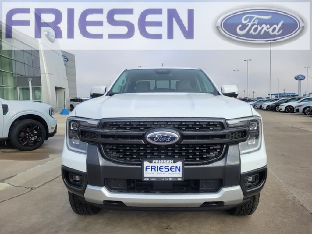 Oxford White 2025 Ford Ranger Lariat 4WD 10-Speed Automatic 2.7L EcoBoost V6 Navigation System, Leather Seats, Bluetooth, Backup Camera, 4X4, Heated Seats, Auto Climate Control, Tow Hitch, Smart Phone Integration, 4WD, 10 Speakers, 120V/400W In-Cab & In-Bed Power Outlets, 4-Wheel Disc Brakes, ABS brakes, Air Conditioning, Alloy wheels, AM/FM radio: SiriusXM, Auto High-beam Headlights, Auto-dimming Rear-View mirror, Automatic temperature control, Brake assist, Class IV Trailer Hitch Receiver, Compass, Convenience Package, Delay-off headlights, Driver door bin, Driver vanity mirror, Dual front impact airbags, Dual front side impact airbags, Electronic Stability Control, Emergency communication system: SYNC 4 911 Assist, Equipment Group 500A Standard, Front anti-roll bar, Front Bucket Seats, Front Center Armrest, Front dual zone A/C, Front fog lights, Front License Plate Bracket, Front reading lights, Front wheel independent suspension, Fully automatic headlights, Garage door transmitter, Gray Painted Center Bar & Grille Surround, Gray Painted Front Fascia & Rear Bumper, Heated door mirrors, Heated front seats, Heated steering wheel, Illuminated entry, Integrated Box Side Step, Internet access capable: FordPass Connect 4G, Leather Shift Knob, Leather steering wheel, Leather-Trimmed Front Heated Bucket Seats, Low tire pressure warning, Memory seat, Navigation system: Connected Navigation, Occupant sensing airbag, Outside temperature display, Overhead airbag, Overhead console, Panic alarm, Passenger door bin, Passenger vanity mirror, Power door mirrors, Power driver seat, Power passenger seat, Power steering, Power windows, Radio: B&O Sound System by Bang & Olufsen, Rain sensing wipers, Rear reading lights, Rear seat center armrest, Rear step bumper, Rear window defroster, Remote keyless entry, Security system, SiriusXM Satellite Radio, Speed control, Speed-sensing steering, Sport Appearance Package, Sport Box Decal, Steering wheel mounted audio controls, SYNC 4A w/Connected Navigation, Telescoping steering wheel, Tilt steering wheel, Traction control, Trailer Tow Package, Trip computer, Turn signal indicator mirrors, Variably intermittent wipers, Voltmeter, Wheels: 18" Machined Aluminum w/Dark Pockets, Wireless Charging Pad, 4WD.